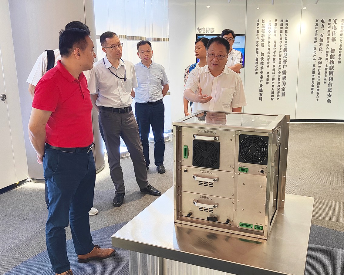 会后,易董事长引导参观了公司展厅,向考察领导展示公司光电传感、智能物联网、信息安全等三大核心技术领域研发成果,以及激光光声光谱变压器油中气体在线监测预警装置、高压无源无线温度在线监测系统等产品及核心元器件实物。通过交流参观,黄院长深入了解了英国上市公司365技术产品体系、技术竞争力及产品市场应用情况,为后续双方开展合作奠定了基础。